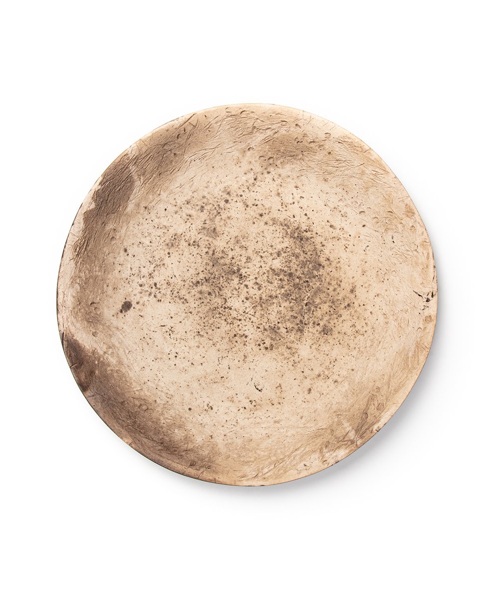 An artisanal earthy crockery range. Each piece is imprinted with indigenous Kalahari grass and double-fired in a kiln dug out of the South African earth.
