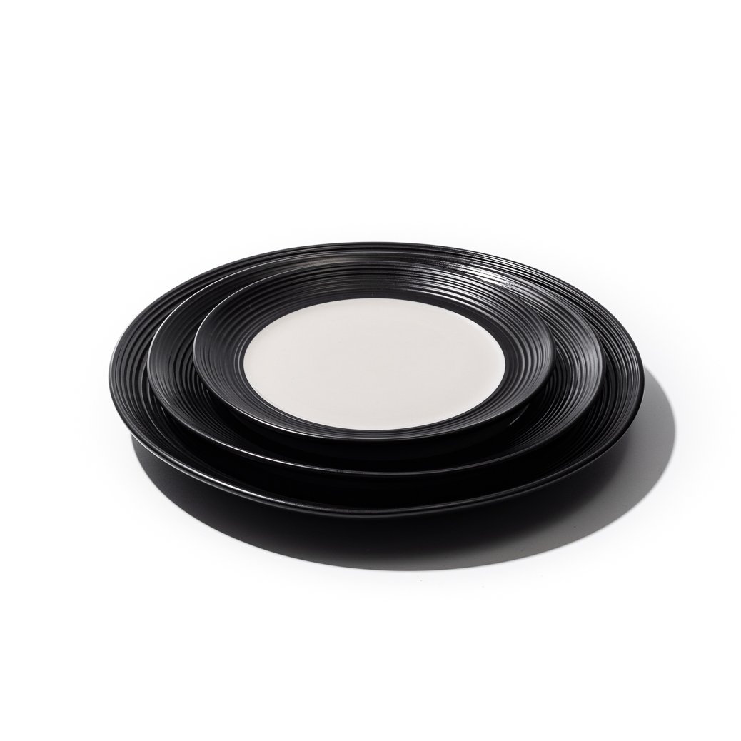 All JAN BlancNoir pieces are made with vitrified stoneware and are dishwasher and microwave safe.