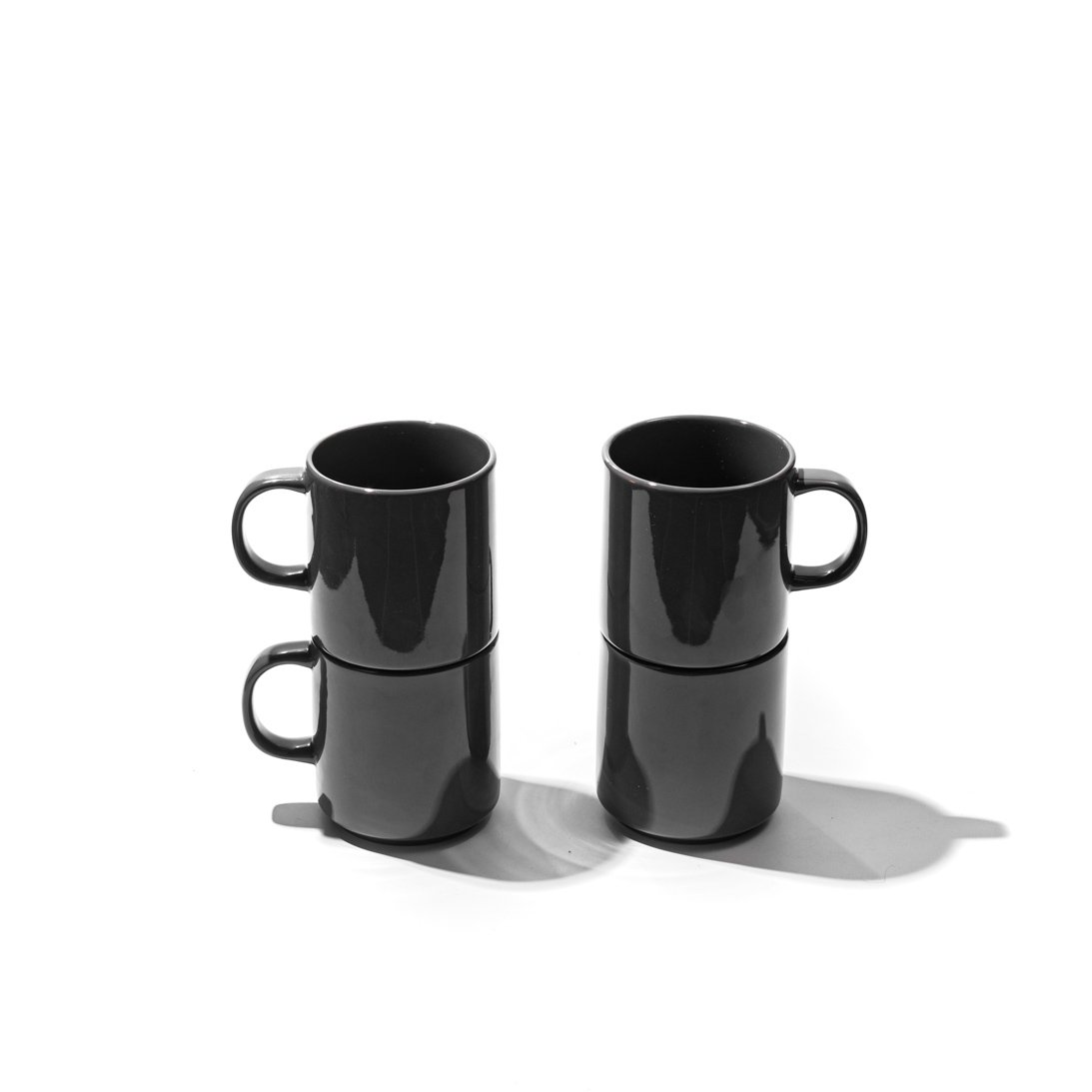 JAN Grey Flat Stackable Tea Cup and Saucer (Set of 4)