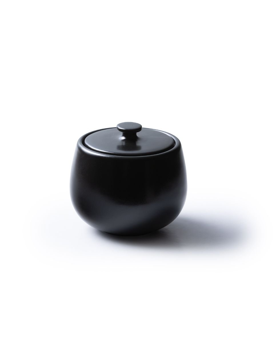 Noir et Noir Stoneware Sugar Pot with Bold Black Glaze