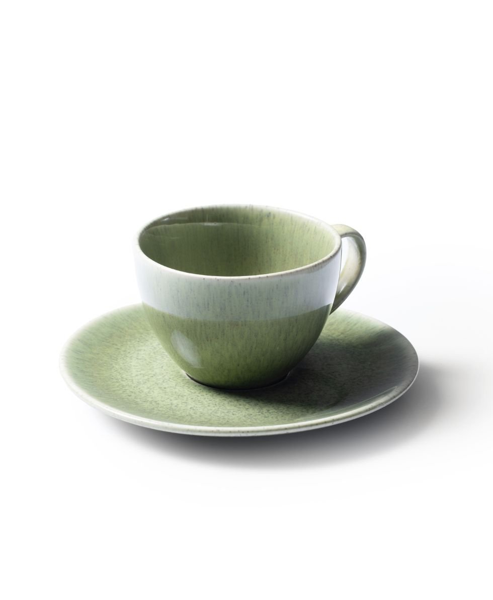 Olive stoneware classic cup and saucer (set of 4)