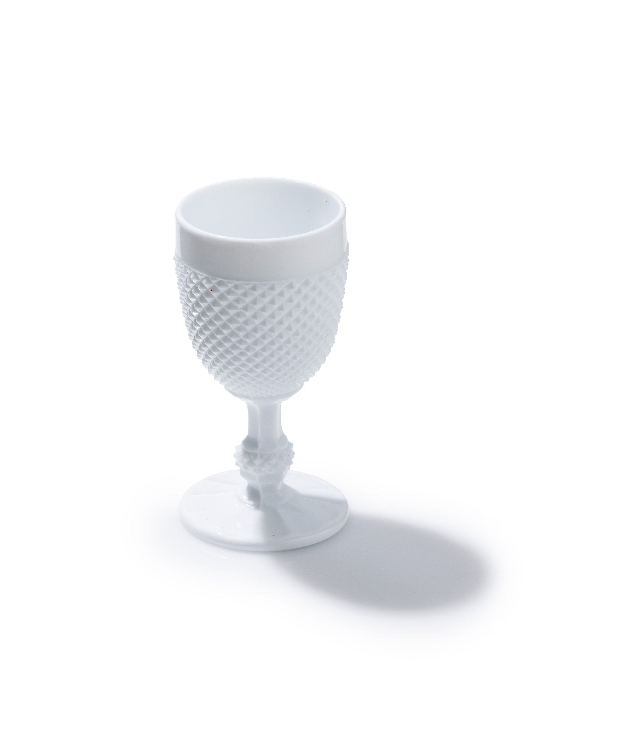 This elegant milk glass goblet, attributed to Casa Pupo, London, circa the 1970s, features a geometric hobnail pattern.