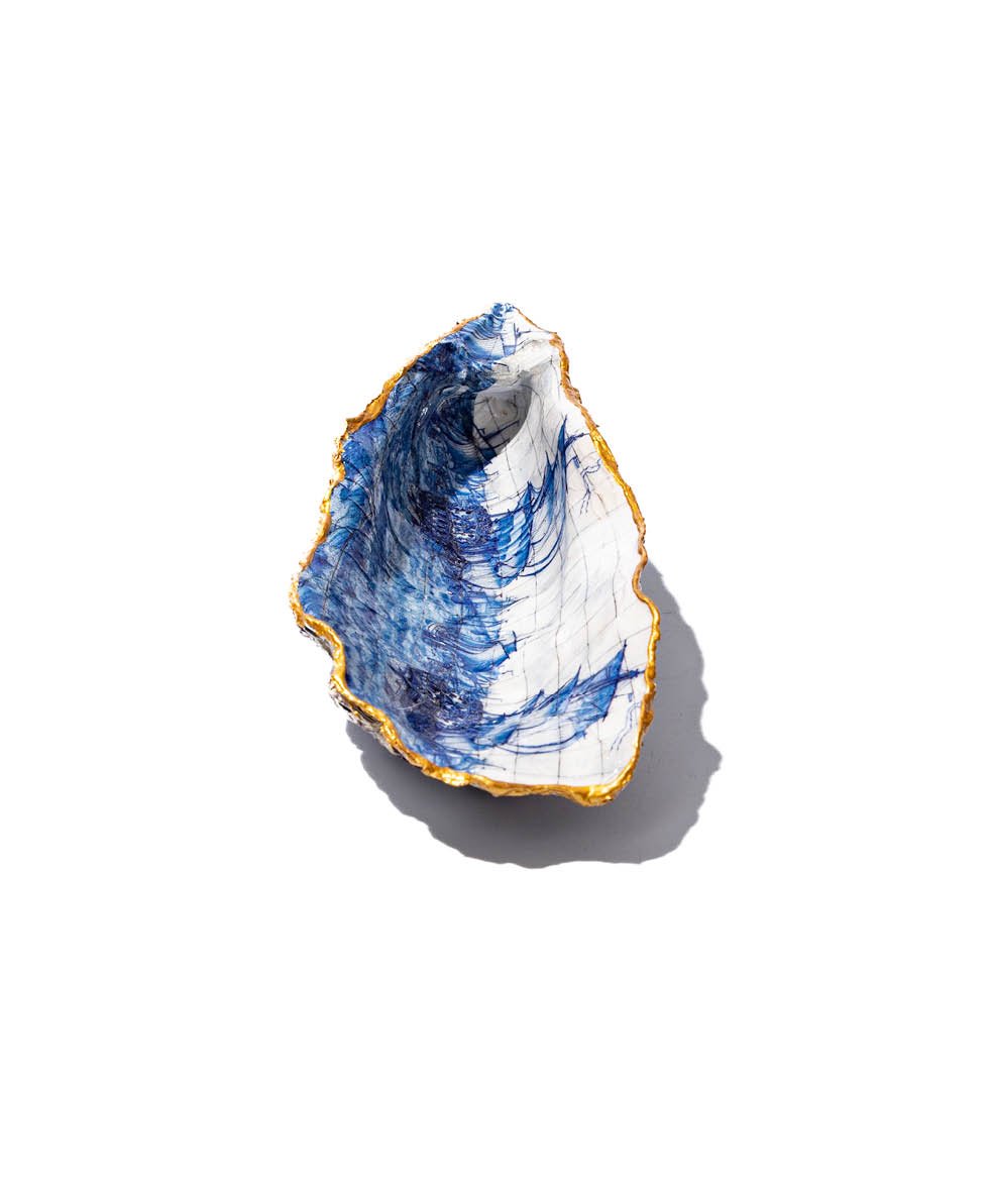 Decorative Oyster Shell: Delft Print (Large)