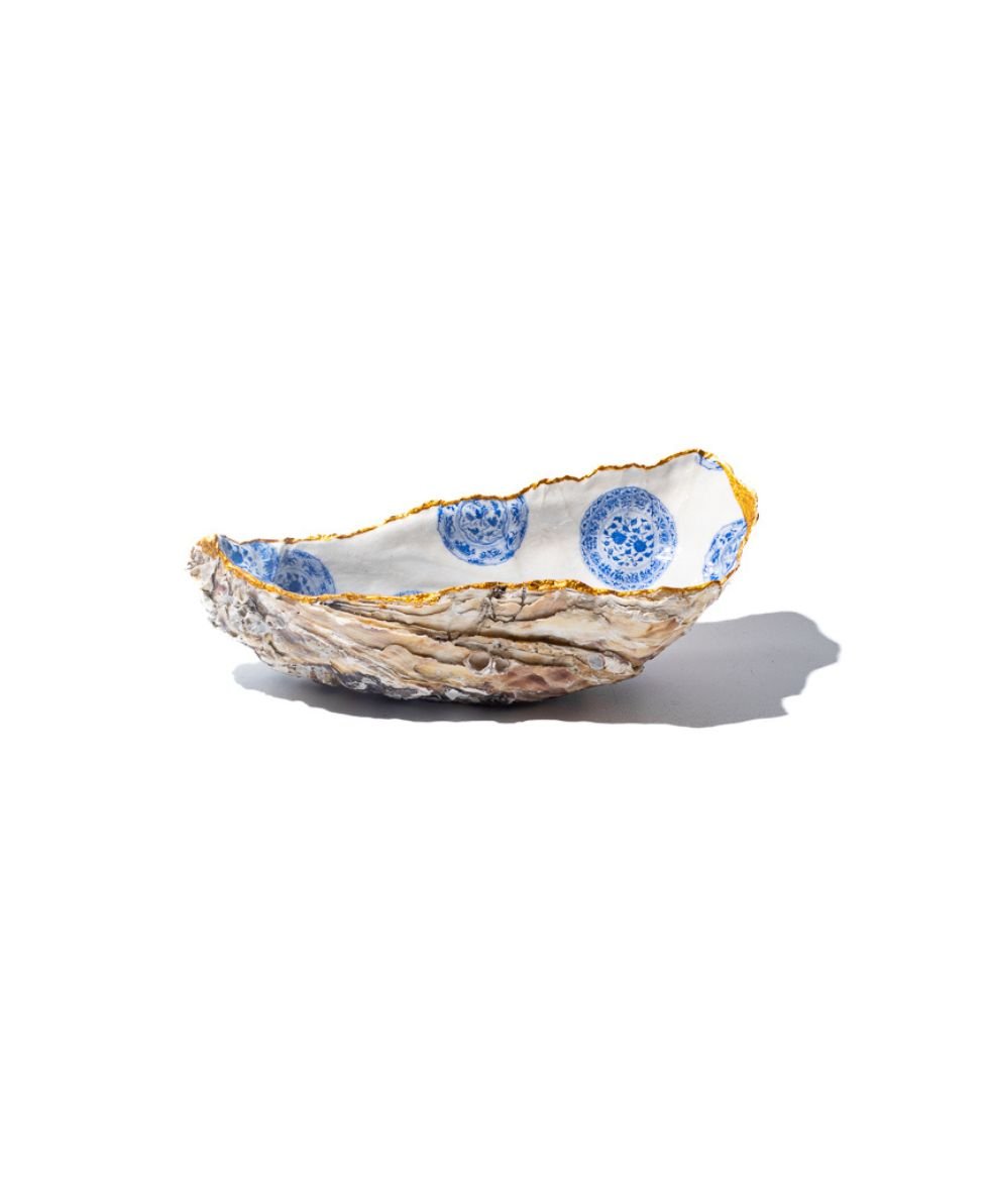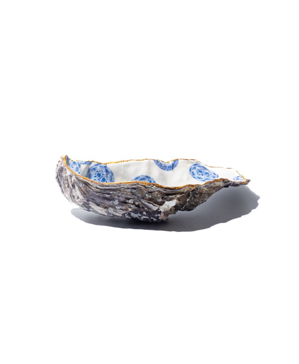Decorative Oyster Shell: Delft Print (Large)