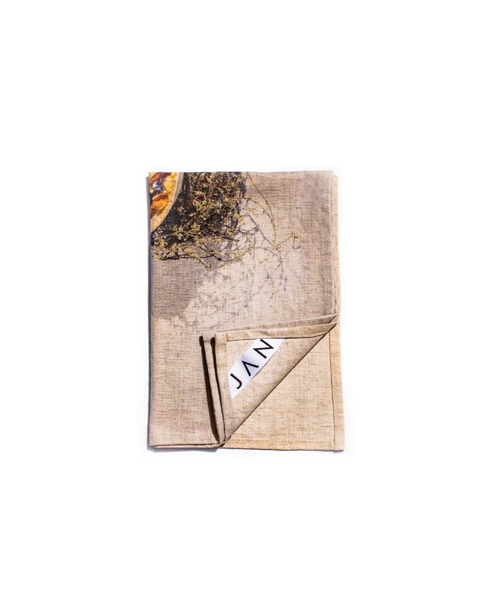 I’ve always loved a tea towel. In fact, I often use them as napkins. It’s a versatile work horse of a cloth, but a beautiful pedigreed one. This 2023 JAN Lap range features gorgeous imagery that we’ve captured over the last few years in my cookbooks and Journals. After being printed on the finest quality cotton-linen blend, the cloths were washed and given a ribbon trim for a convenient hook.