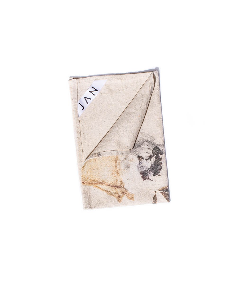 I’ve always loved a tea towel. In fact, I often use them as napkins. It’s a versatile work horse of a cloth, but a beautiful pedigreed one. This 2023 JAN Lap range features gorgeous imagery that we’ve captured over the last few years in my cookbooks and Journals. After being printed on the finest quality cotton-linen blend, the cloths were washed and given a ribbon trim for a convenient hook.