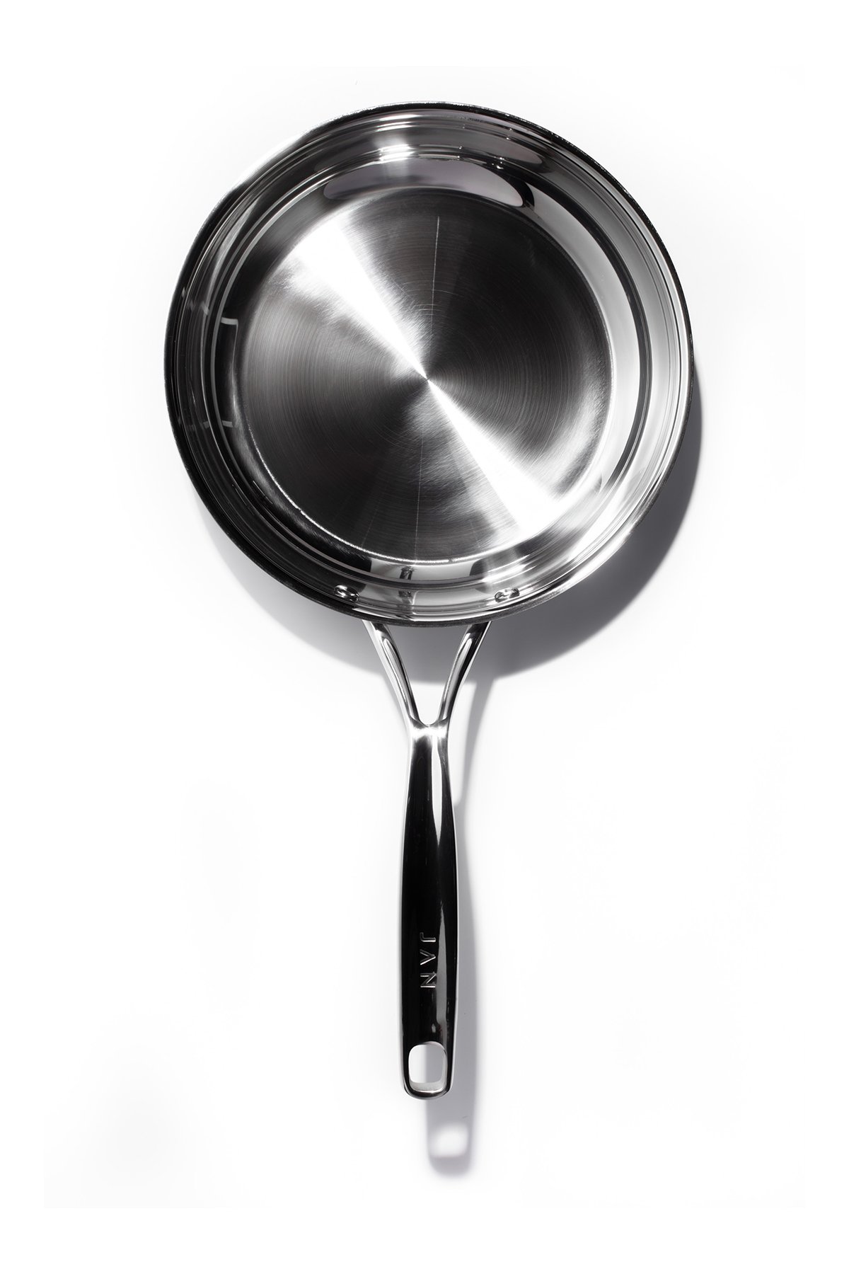 Multi-ply stainless steel interior and exterior with an aluminium core. Stainless steel cooking surface does not discolour, react with food or alter flavours. Ergonomically shaped handles provide a comfortable grip and stays cool during use, riveted to pan providing durability.