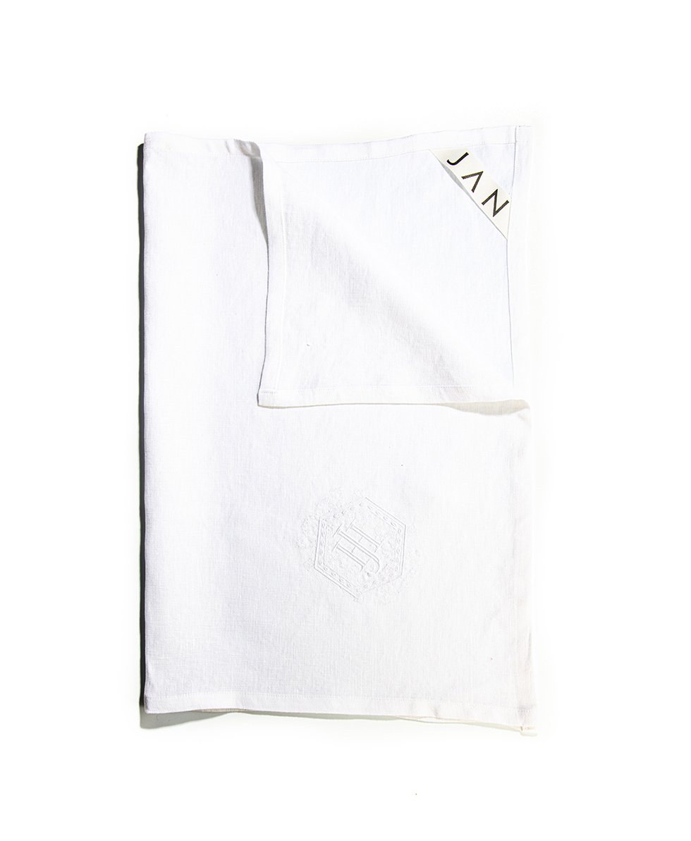 JH MONOGRAM EMBROIDED LINEN TEA TOWEL