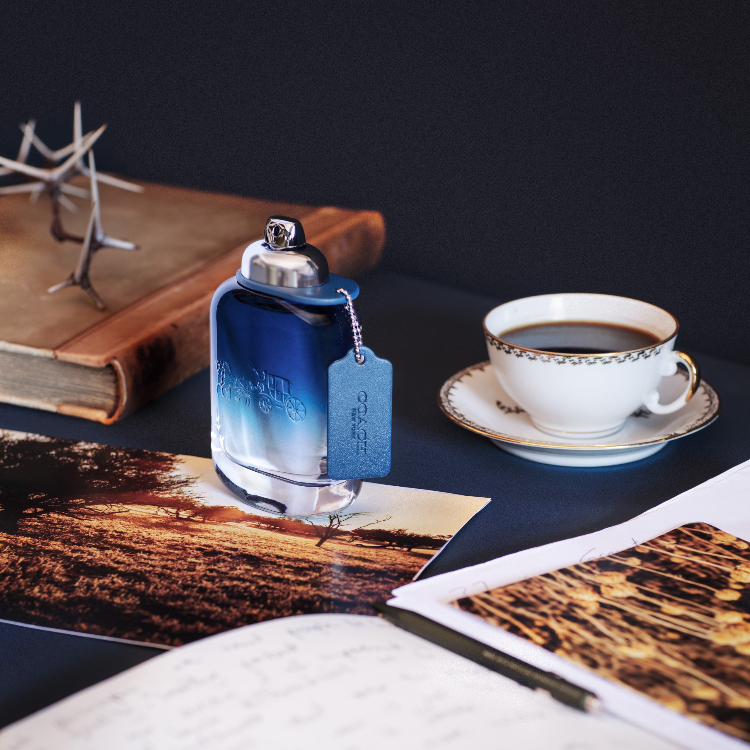 Coach Blue is inspired by the freedom and optimism of an American road trip. Invigorating and aromatic, it evokes blue skies, open roads and cool breezes.