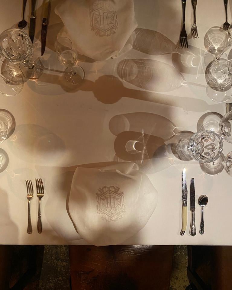 Ducking to enter, it wasn’t unlike Alice’s first steps into wonderland. With foraged fynbos lining the ceiling beams, candles lighting up the cheese table on the opposite wall and an understated long table taking centre stage, running from the fireplace to the left to an antique cupboard filled with fine glassware to the right, we entered a fantasy from the past wrapped in a cocoon. There was no doubt that this would be a feast for the books!