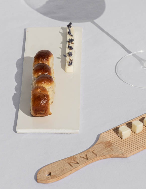 Perhaps the most decadent way to enjoy a mosbolletjie is fresh out of the oven, as it is served at JAN Franschhoek, topped with a generous slathering of homemade butter. In honour of the whispering lavender fields surrounding the Veepos building, the chefs prepare fresh lavender butter daily to serve with the mosbolletjie course – creating a conversation between the dish and its surroundings.