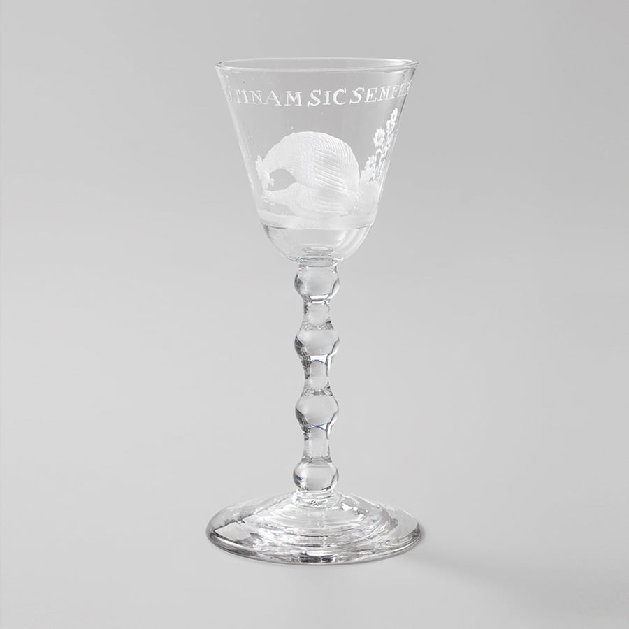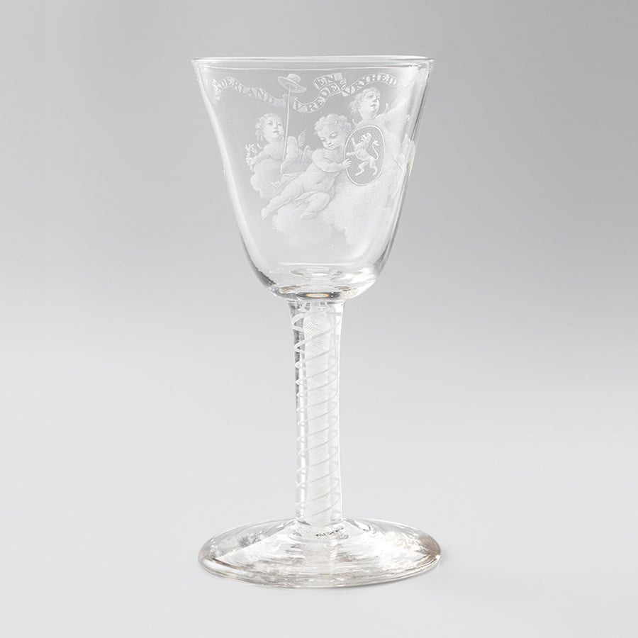 Wine glass with scenes relating to marriage and fertility, anonymous, c. 1725- c. 1750.