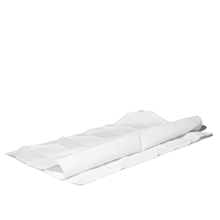The signature JAN napkin fold as seen in tables in Nice, the Kalahari, and beyond. The perfect JAN napkin looks like a beautifully thick cloud on the table. For an added twist, hide a welcoming drink underneath or leave a few canapés on the cloud.