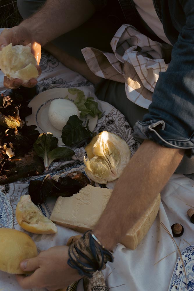 One of the main reasons we don’t picnic more often is because it’s not always practical. For one thing, it lacks stable surface space for placing delicate items like wine glasses and bottles. Consider bringing a chopping board or another hard surface, like a tray, that suits the look you’re going for. Having a cheese board or two on hand is always handy for minor chopping and dicing when wanting to keep things fresh. If you can’t stand to look at it, hide it under the picnic blanket. Other than that, pick a spot with a large tree trunk or large boulder to use as a serving surface if you have a big spread in mind.