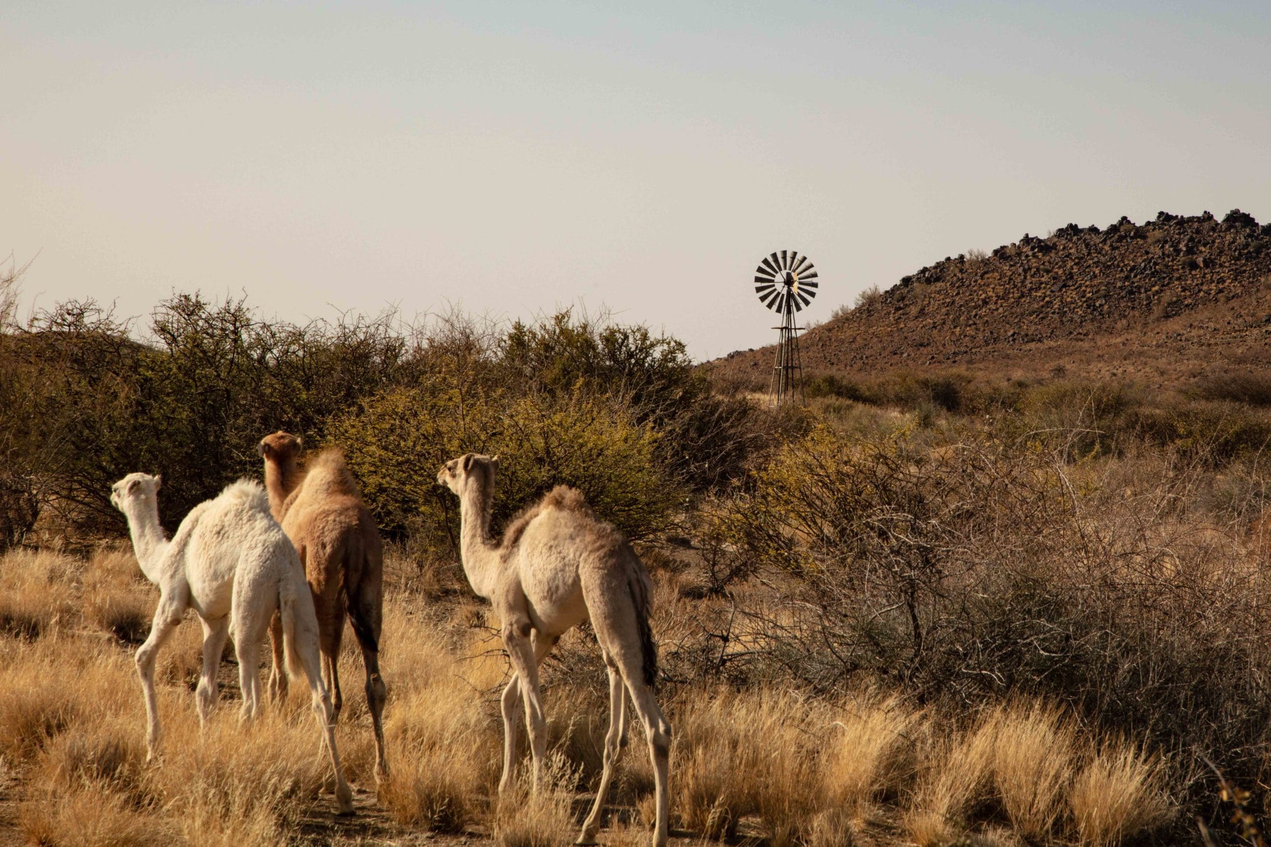 “Maybe it’s their size that’s intimidating, but camels have this reputation for being grumpy – aggressive even,” says Hans. “But in truth, they’re really the loveliest, most soft-natured creatures I’ve worked with. They’re quite complex animals,” he continues. “They hate to be alone, but they’re not fond of physical contact either. I think, as farmers, we’re used to ruling by force, but I’ve found it’s far more effective to treat them gently – and they’ll be gentle back. But don’t underestimate them,” cautions Hans. “If they’re unhappy, they will leave, and there’s very little that can stand in their way. A fully-grown camel can rip a gate right off its hinges.”