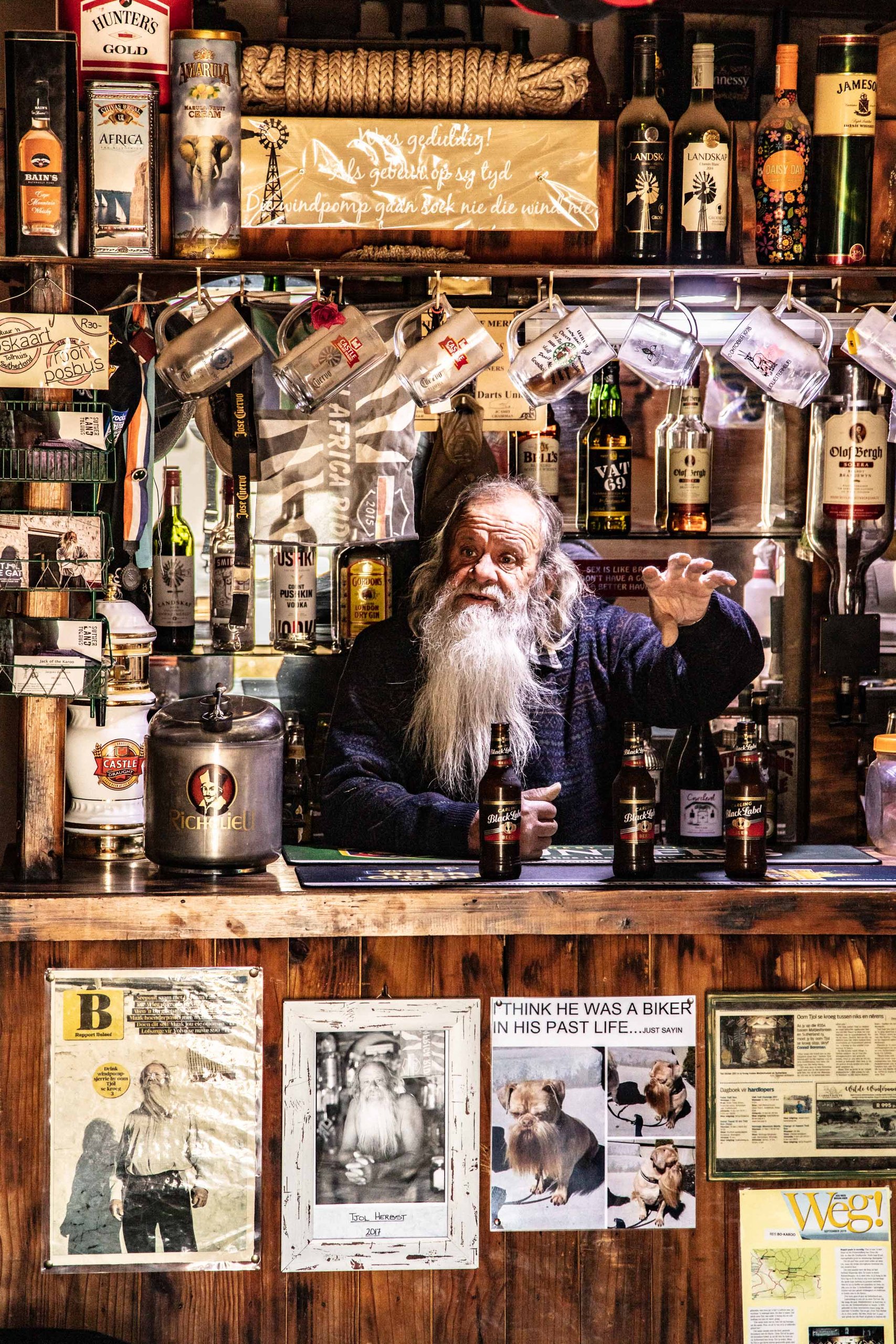 Spending an hour in the man’s company, however, one is transported to a world where time has long since forgotten its name, and people live for the thrill of the open road. One anecdote involved a biker gang’s annual pilgrimage whereby 250 easy riders descend upon Tjol se Gat for some refreshment before heading into the town of Sutherland 20 km away in nothing but their unmentionables.