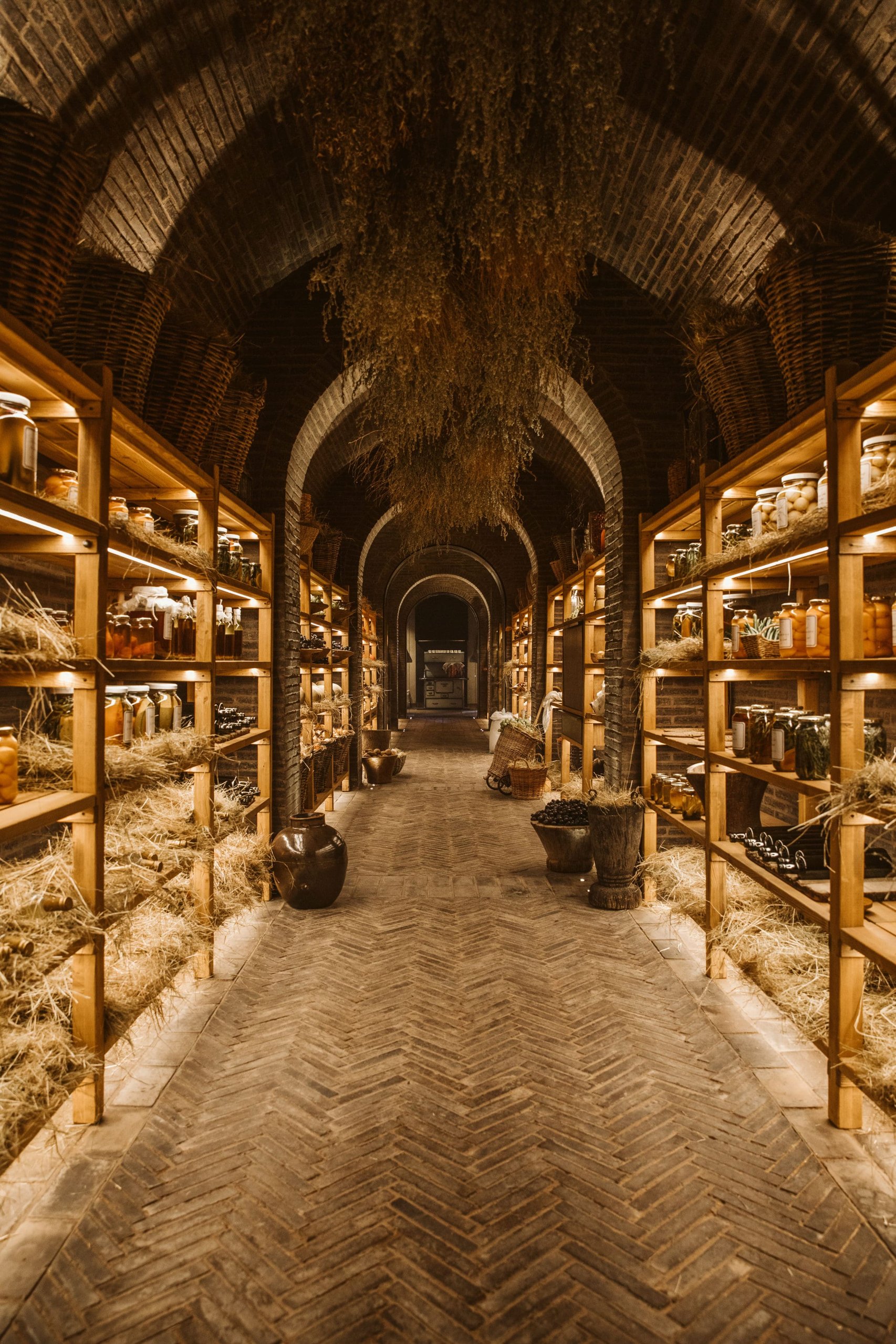 One such example is the incredible Klein JAN root cellar that runs from the petrichor staircase to the sop en brood kitchen in the restaurant. The concept of this cellar dates back to the 19th century, though the idea of storing food underground goes back to ancient times. Every fresh ingredient we preserve in this temperature-and-humidity controlled space returns to the earth one last time before it is consumed; ensuring a sustainable and sensory experience for guests influenced by Kalahari history and innovation over the years.