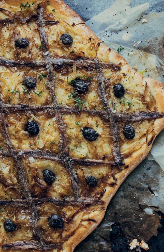 One of my most reliable dishes to make when I’m at home in Apricale. The dough is super easy to throw together, and while it rises, the onions slowly cook down into this amazingly sweet, cozy mix with garlic and herbs. Spreading it all over the dough and laying the anchovies and olives on top always feels like the fun part. And when it finally comes out of the oven, golden, fragrant, and a little rustic, it’s the kind of thing that makes everyone wander into the kitchen asking what smells so good.