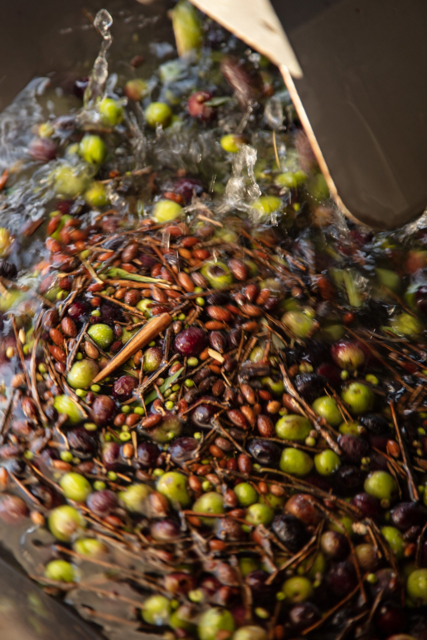 Once the olives are harvested, they are cleaned of their leaves, stems, twigs and dust, so that only the whole, clean olives are processed for extraction.