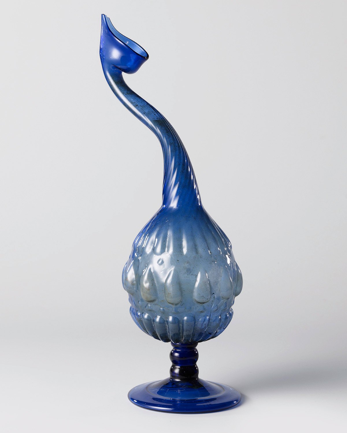 But no matter what our relationship with blue glass over the ages, we’ve always been drawn to it. Perhaps it is its resemblance to the sky or great big masses of water that has a calming effect on our psyches, or perhaps we’re drawn to its magic. It doesn’t occur readily in nature, after all. For the most part, what stains the sea and sky cobalt is a mystery to us.