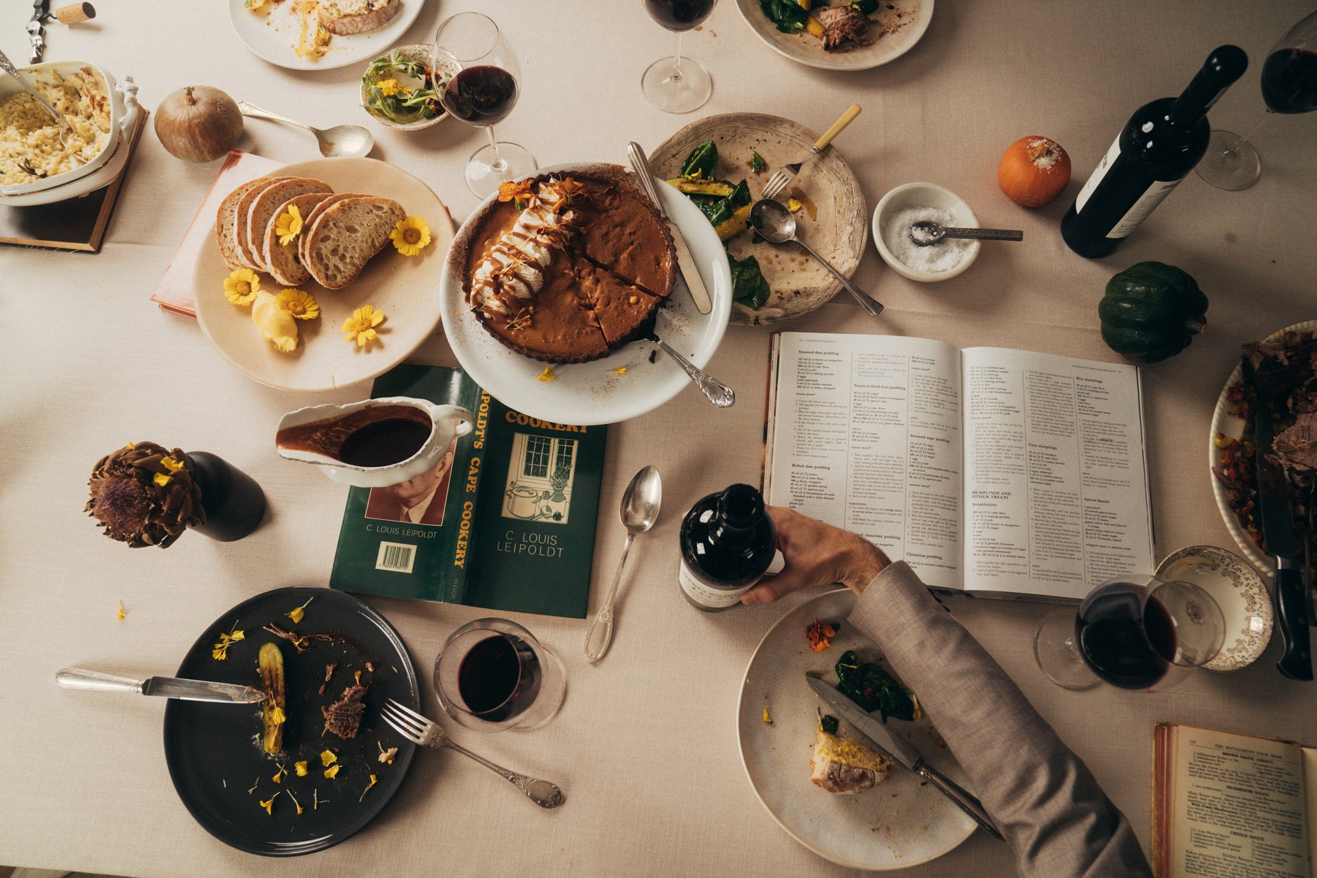 Don’t forget to add a touch of nature to your tablescape. Fresh flowers and foliage (sustainably sourced or foraged) contained in a cleverly curated collection of vases and vessels makes for an instant wow moment. Alternatively, experiment with fresh vegetables and fruit – their unique shapes, textures and colour offer endless design possibilities (and taste equally as good post-use).