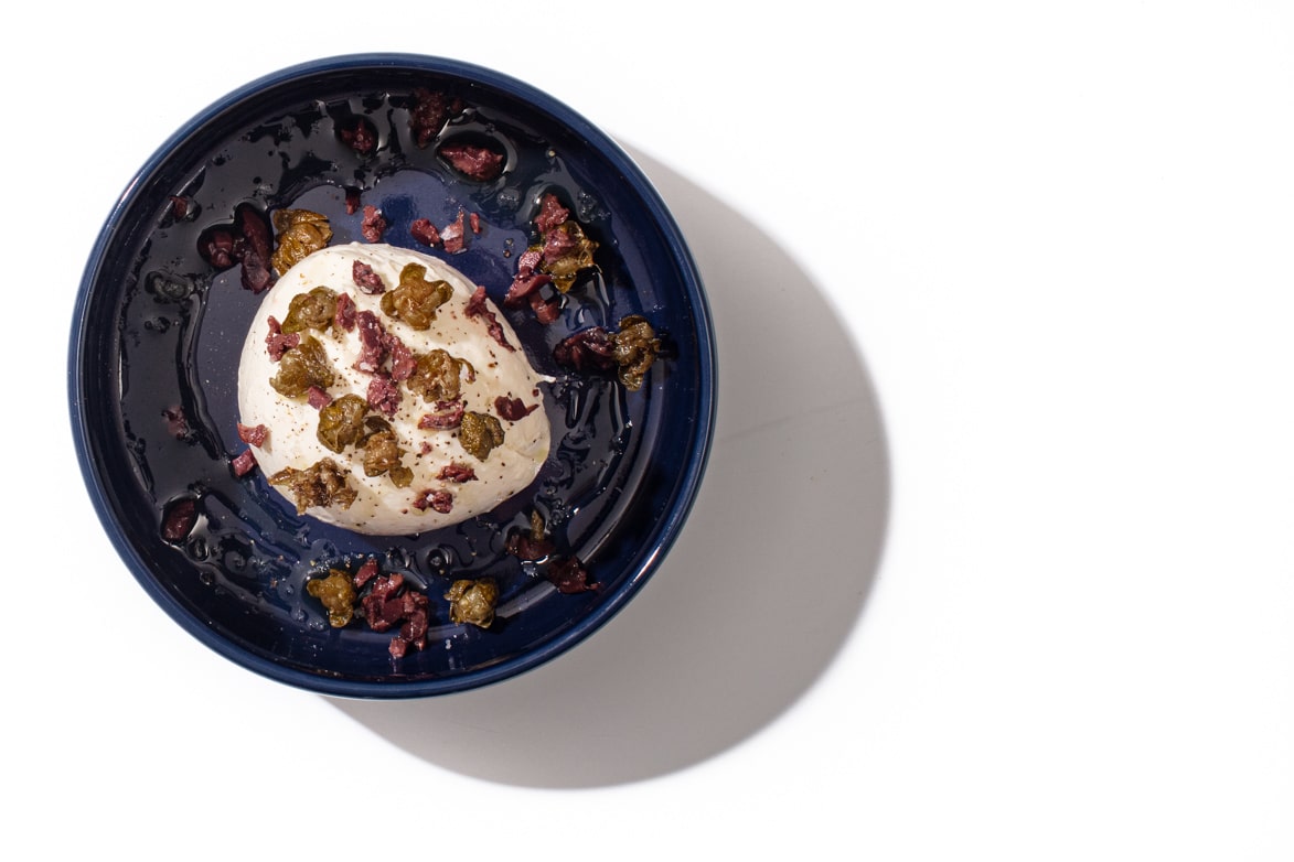 When translated directly, fior di latte translates as “flower of milk”, owing to the fact that it is made of the highest quality, grass-fed cow’s milk. When a cow is grass-fed, its milk has a bolder dairy flavour. In shape and texture, though, fior di latte resembles mozzarella – and has a similar taste, although a more discerning palate would be able to pick up the difference.