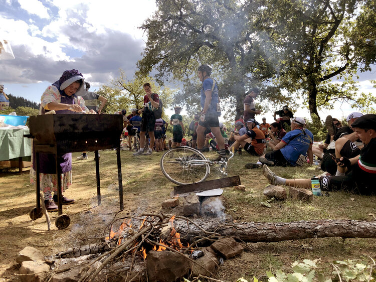 Italy was filled with a rollercoaster of emotions for Poppie. The highs of new experiences (like travelling by boat for the first time in her life) came alongside the discomforts of eating totally foreign food every day. Although a gelato at sunset always helped ease the ‘weirdness’ of anything else we had asked Poppie to try. The Eroica cycling event drew near, and Poppie was ready to braai! She expressed how much she missed her stalletjie back in Laingsburg, and she wanted to get back to making roosterbrood again. On the day of the event, firewood was foraged from the surrounding Tuscan forest. Poppie was warned that she wouldn’t be able to find firewood in Italy – but in fact, it was abundant! ‘Hier lê hout vir die hele Afrika!’ she laughed. To call the day a success would be an understatement. As 2000 cyclists came and went throughout the day, the queue at Poppie’s stand never ceased. Arms stretched out to grab the warm bread straight off the fire, and the Italians gawked at the combination of apricot jam and their scared parmegiano. After a long day – and over 500 roosterbrood later – Poppie was a star!
