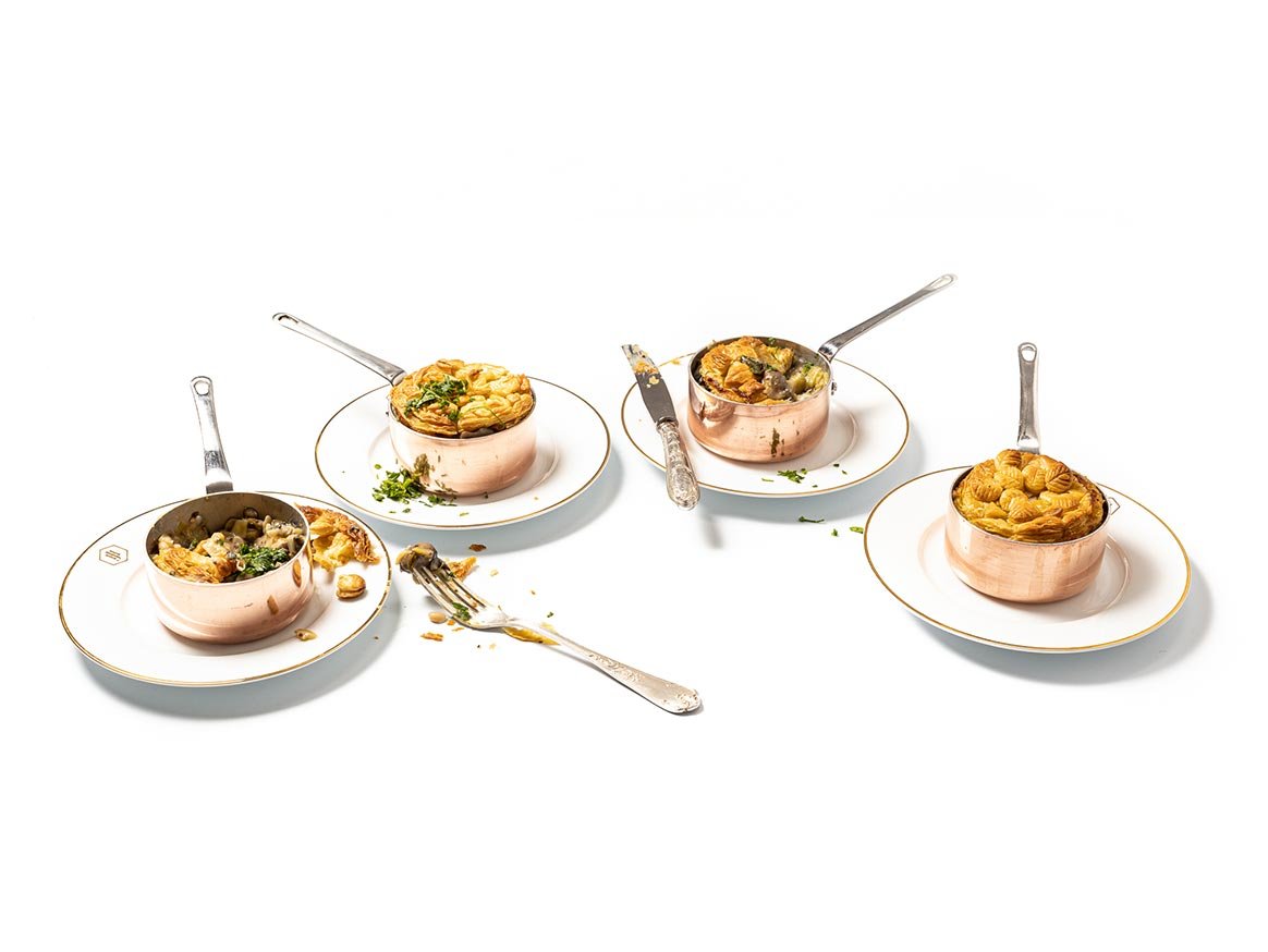 Who said meat-free should ever mean comfort-free? It’s not all salads and umami-suffused lentils. There’s no reason why you can’t indulge in a hearty winter warmer, like pot pies – and no reason to move mountains just so it tastes like meat either. I’ve found that since I started eating more plant-based food, indulging in classic comfort food leaves me feeling just that little bit lighter, but with the same level of satisfaction. And these pot pies are soon becoming a firm favourite.